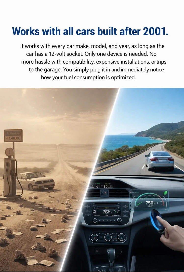 🚗 Works on ALL vehicles—cuts fuel use by 80% monthly